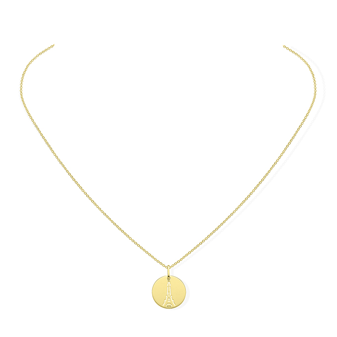 Collier chaîne médaille Tour Eiffel doré