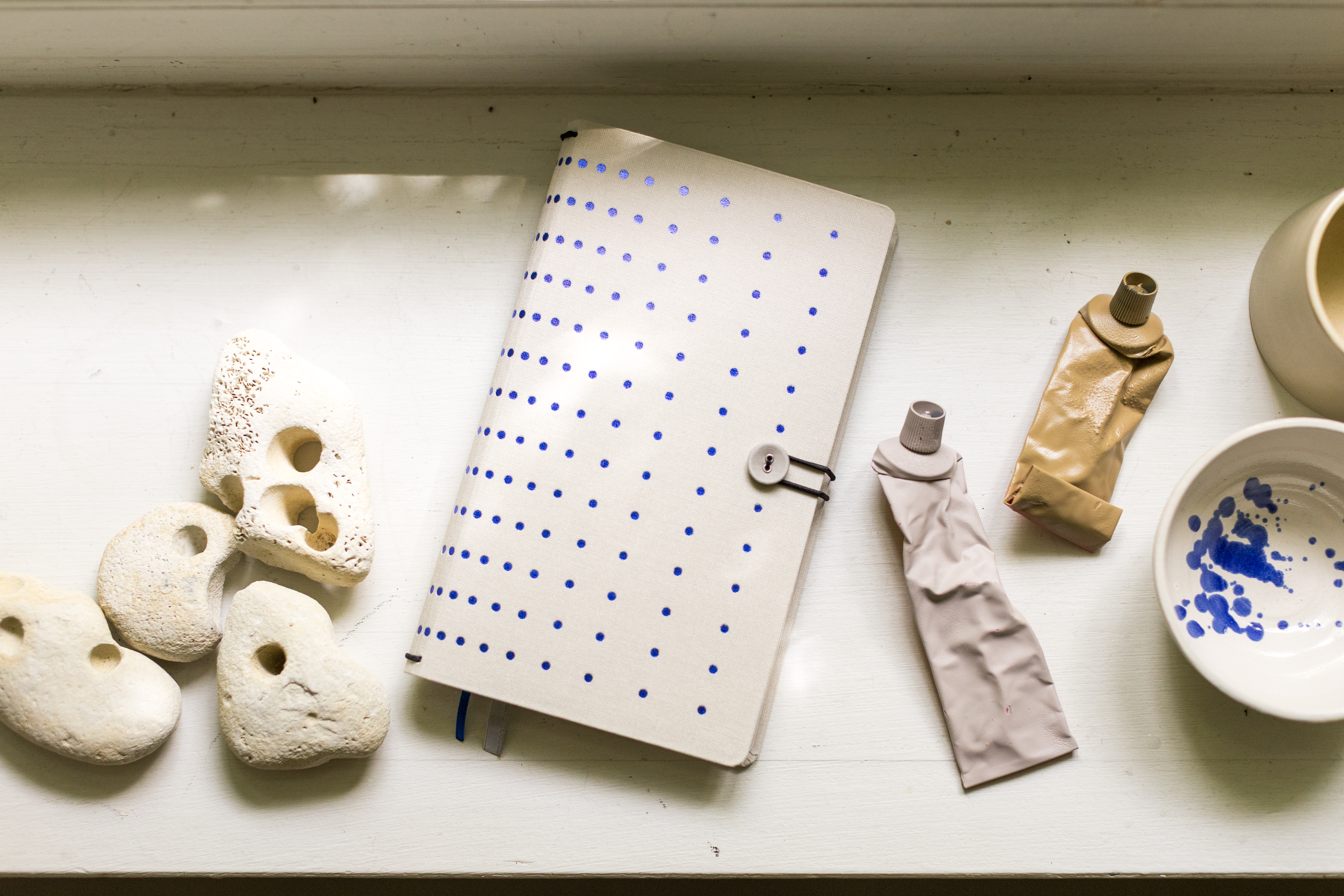 Produit de manière durable en Europe sur du papier certifié FSC, ce carnet recouvert de lin gris clair et imprimé de détails métalliques brillants comporte trois "bullet journals" distincts, qui peuvent être retirés. L'un avec des lignes, l'autre avec une grille pointillée et le dernier vierge. Un carnet pour noter vos idées, faire des croquis, ou tout ce à quoi vous pousse votre imagination. À l'arrière, une pochette offre une possibilité de rangement très pratique pour y glisser des notes éparses.